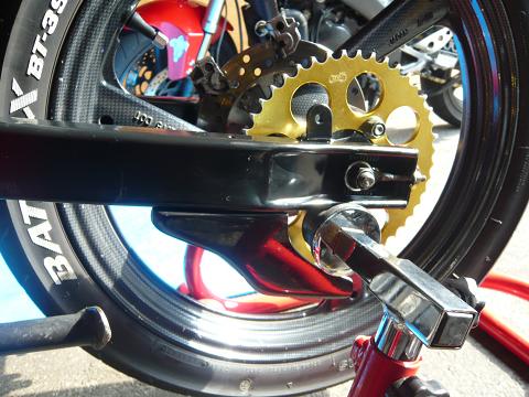 スイングアームにネジ切ってもらってスプロケガード装着しました。
