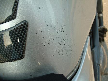 こすったら落ちたけど・・・ツナギのミンクオイルか?