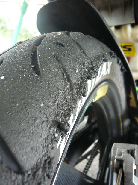 タイヤはドロドロ。