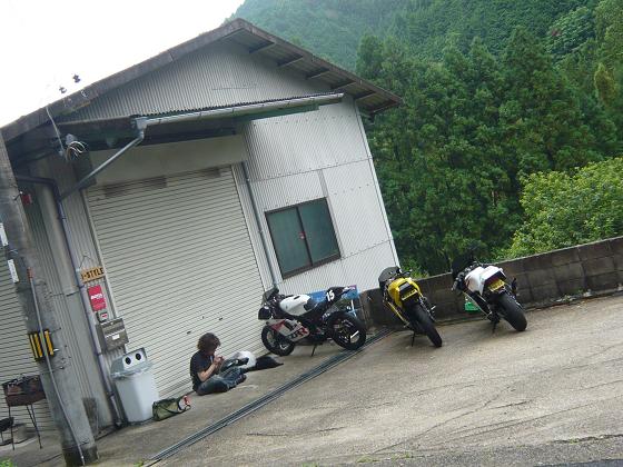 上がっていったら、た~こさん手前で雨打たれてR-style前で雨宿り。