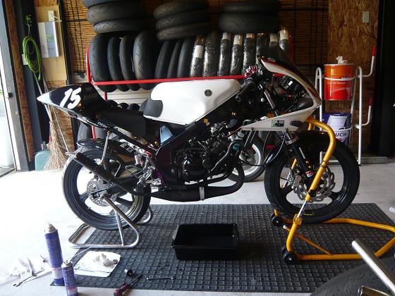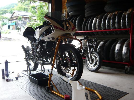 少しだけ走ってタイヤ皮むき、キャブセッティング変更。
