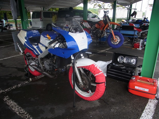 昼には雨も止み、恐る恐るウエット路面でコースイン。